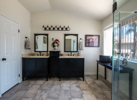This remodel of a master bathroom started as a restoration of a small shower after water damage was sustained from water seeping through the grout between the ceramic tile. The homeowners decided to use this as an opportunity to address other areas of concern as well, including the carpet flooring, low counter tops, insufficient electrical outlets, an unwanted tub and the lack of a door between the bathroom and master bedroom. They also opted to have a shower surround installed to lower the risk of water damage. The space was totally gutted, and basically using the same footprint, a beautiful new bathroom was created that addressed all the previous issues.